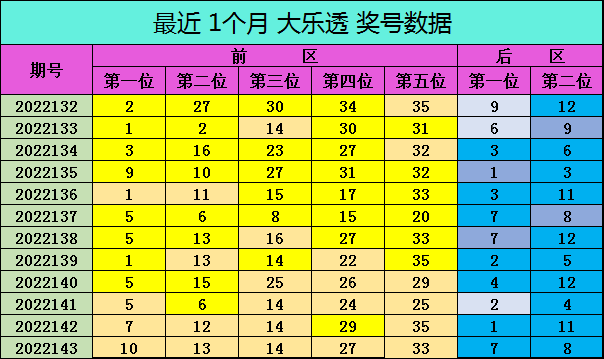 前区第二位,近一个月的波动范围在2-27,其中小于15的奖号开出9枚;奇数出现6枚,偶数出现6枚,上期开出13,本期推荐参考:11。
