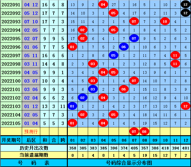 前区第一位:上期开出奖号01,出现在第一区,最近5期出现范围在01-08区段,本期该位精选号码01。