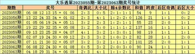 开奖回顾:体彩大乐透第23063期奖号为:04 18 29 31 34+06 09,前区奖号奇偶比为2:3,大小比为4:1,除4余数比为1:1:2:1,跨度为30。后区为一大一小、一奇一偶组合。
