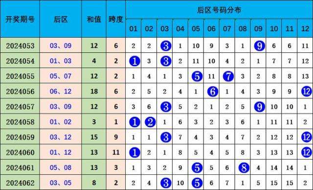上期后区号码为03号和05号,为小小奇奇组合,近10期后区大小比为7:13,012路比为11:4:5,重点推荐偶奇组合04 09。