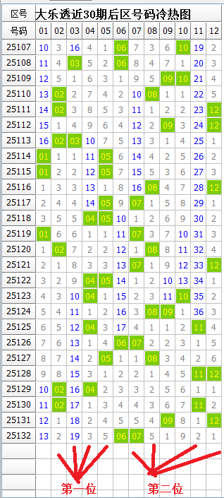 后区0路号码有3 6 9 12,后区1路号码有1 4 7 10,后区2路号码有2 5 8 11。