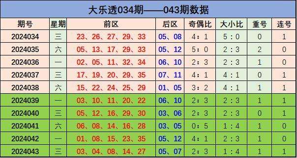 大乐透24043期开奖,本期奖号:前区03、04、08、14、27后区05、07。当期前区号码三区比为3:1:1,奇偶比为2:3。形态方面,前区开出连号03、04、开出重号08。