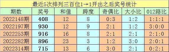 1、排列三最近两期百位号码分别开出1和1,历史上百位号码连续两期分别开出1和1的奖号出现了57期。前五期开出之后其下期奖号分别为:408、930、916、896、715;