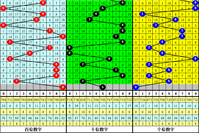 其中,百位号码开出奇偶比为26:19,大小比为25:20,本期注意百位出现奇数号码,一码看好9。