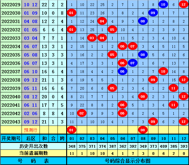 前区第一位:在历史第044期同期开奖中分布范围在01-22区段,平均值为6。4,奇偶比为8:7,目前奇数号码遗漏了1年,今年第044期注意奇数号码回补,关注号码01。