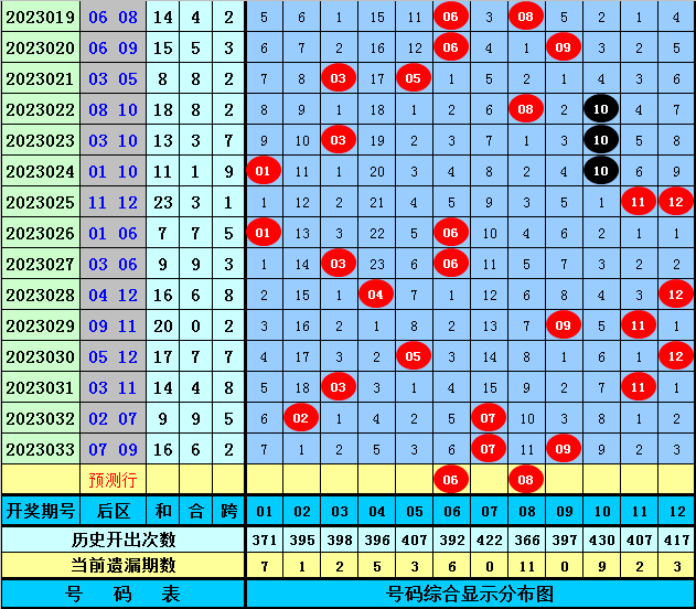 前区第一位:在历史第034期同期开奖中分布范围在01-14区段,平均值为5。4,奇偶比为7:9,目前奇数号码连续遗漏了2年,今年同期重点关注奇数号码回补,推荐号码09。
