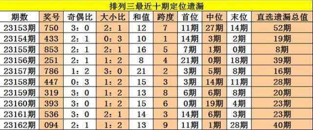 开奖回顾:排列三第2023162期奖号:094,定位直选遗漏值11期、1期、28期,遗漏总值为40期。