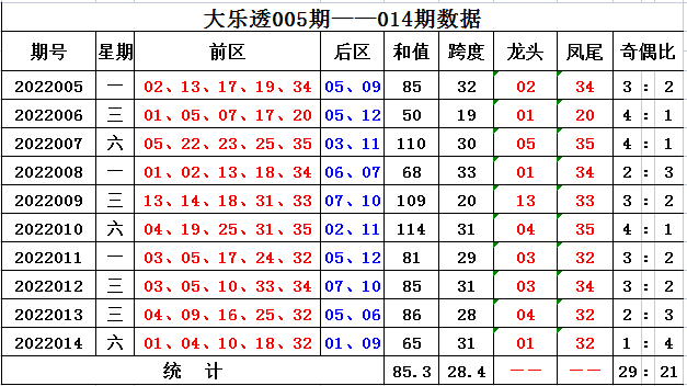 开奖回顾:大乐透第22015期奖号为:01 02 08 12 30 + 05 12,前区号码大小比为1:4,和值为53,跨度为29,奇偶比为1:4。后区和值为17。