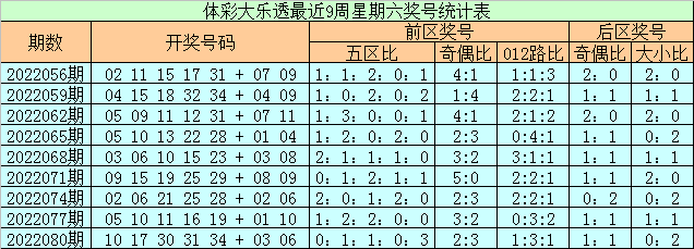 上期回顾:体彩大乐透上周星期六(第2022080期)奖号为10 17 30 31 34 + 03 06,前区奖号五区比为0:1:1:0:3,奇偶比为2:3,012路比为1:3:1,后区奖号奇偶比为1:1,大小比为0:2。
