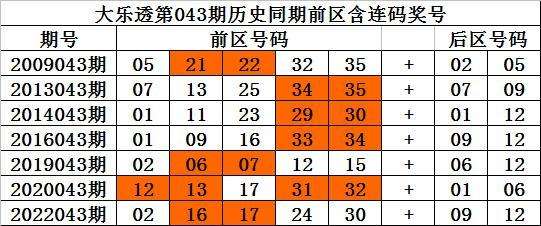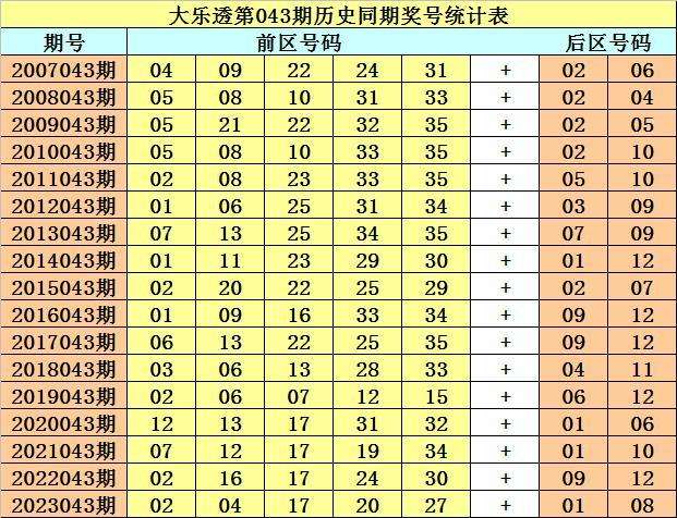 大乐透第2024043期历史同期推荐: