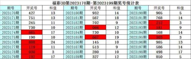 上期回顾:福彩3D第2023199期奖号为:850,其中奖号组选类型为:组六,奇偶比为1:2,大小比为2:1,012路比为1:0:2,和值为13,跨度为8。