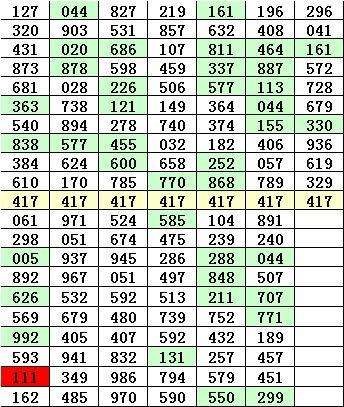 另外,历史上直选号码417开出7次,其下期开出奖号为:061、971、524、585、104、891,前后10期分别开出号码:
