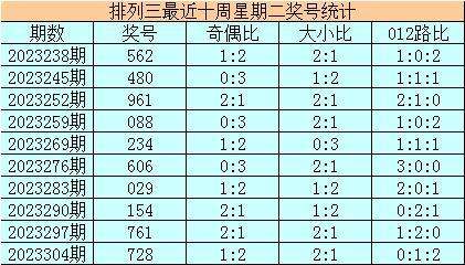 排列三十周星期二分别开出奖号:728、761、154、029、606、234、088、961、480、562,其中号码奇偶比为10:20,奇数号码走势较冷;号码大小比为15:15,大小号码开出个数相当;号码012路比为12:8:10,0路号码热出。