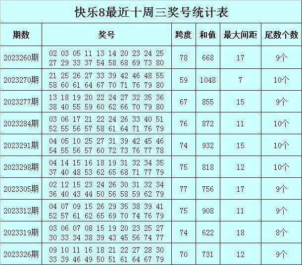 福彩快乐8第2023332期开奖回顾:03 05 14 16 17 27 30 31 33 35 42 43 48 56 57 63 66 70 74 76,其中奖号首尾间距为73,和值为806,最大间距为10,尾数分布为:尾数9包含0个号码,尾数1、2、8包含1个号码,尾数0、4、5包含2个号码,尾数7包含3个号码,尾数3、6包含4个号码。
