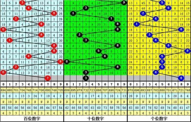 百位号码奇偶比为1:2,奇数走势较冷,本期看好奇数出现;大小比为2:1,大号走势较热,本期防止大号再次出现。