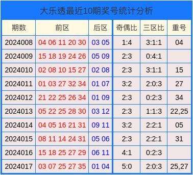 开奖回顾:大乐透第2024017期奖号:03、07、25、27、35+01、04。其中奇偶比为5:0,三区比为2:0:3,开出2枚重号25,27。