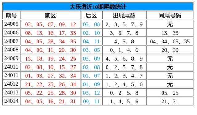 上期开奖:大乐透第24014期奖号为:04、05、16、21、31 + 09、11,开出尾数1、4、5、6,含同尾前区:21、31。