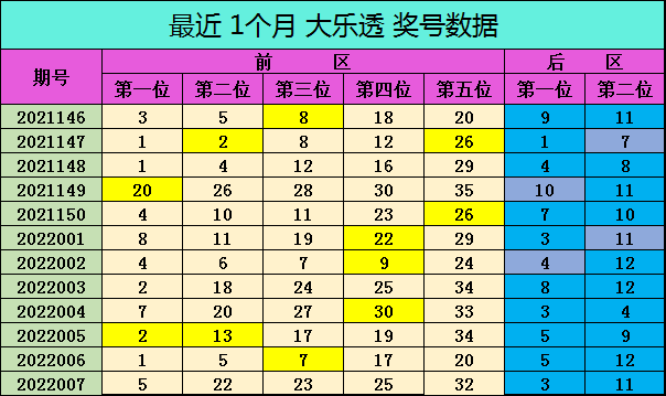 许老六第2022008期大乐透奖号推荐:
