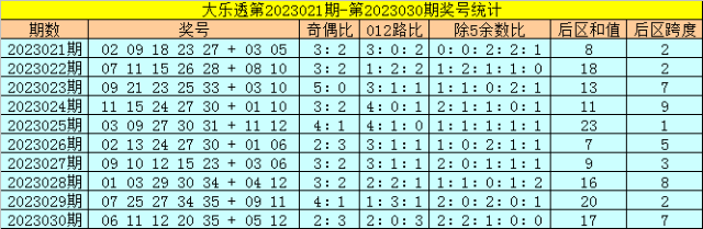 大乐透第2023031期前区奖号除5余数分析: