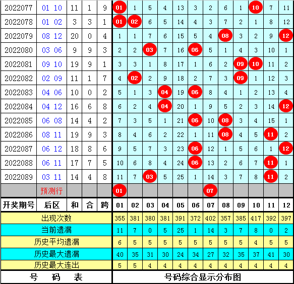 本期后区注意四码01、07、08、11,单挑两码01、07。
