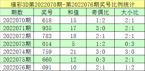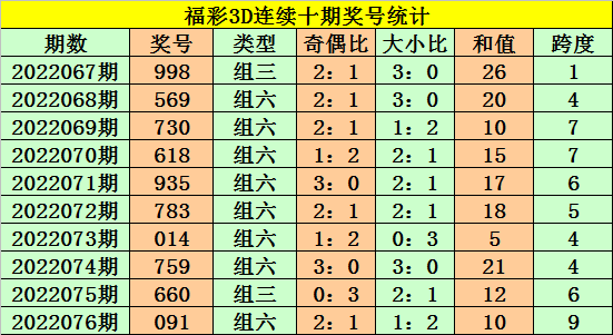 开奖回顾:福彩3D第2022076期:奖号091。