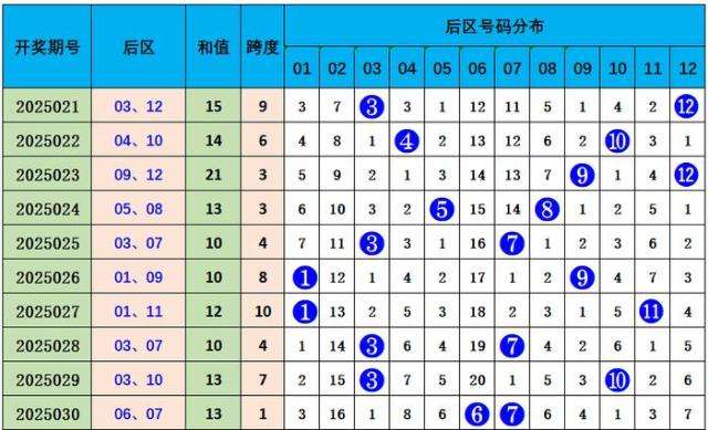 前区第三位:上期开出奖号14,近10期开奖分别为:25、13、22、13、08、07、11、20、26、14,奇数奖号开出5次,偶数奖号开出5次,奇偶数号码出号均衡。本期关注偶数号码,参考号码:26。