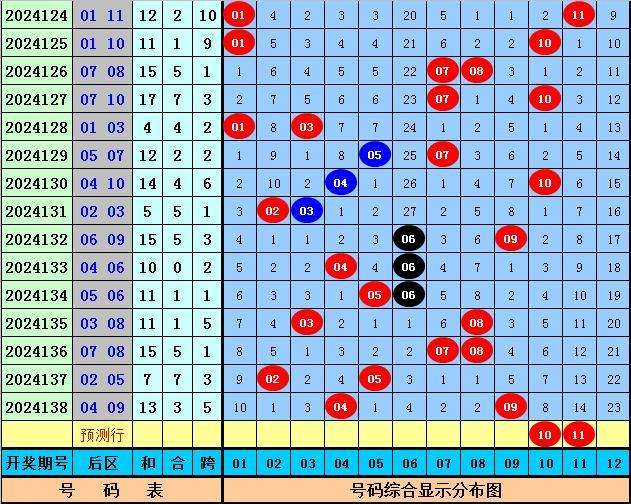 后区分析:上期后区开出一偶一奇、1路+0路组合04、09,最近10期后区奖号奇偶比为9:11,偶数号码走势活跃,后区奖号012路比为7:6:7,本期预计出现在02、08、09、10、11之中,两码单挑10、11。