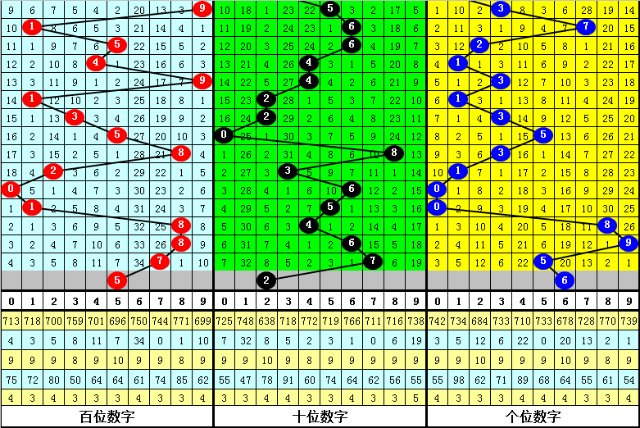 (2)在号码频次方面,开出个数最少的三个号码为:7、0、4,一般来说这三个号码不会同时出现,本期杀一码7;开出个数最多的四个号码分别为:5、2、3、1,本期看好这四个号码中包含1-2个开奖号码,胆码参考1。5。