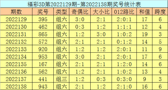上期回顾:福彩3D第2022148期开奖号码为775,组选类型为组三,奇偶比为3:0,大小比为3:0。