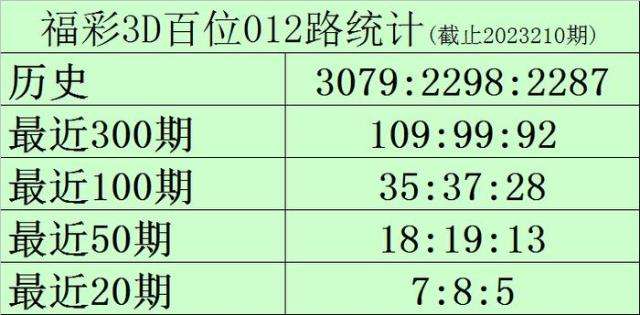 百位推荐:百位最近20期号码012路比为7:8:5,目前0路号码遗漏0期,1路号码遗漏1期,2路号码遗漏3期,另外0-9号码遗漏期数分别为: