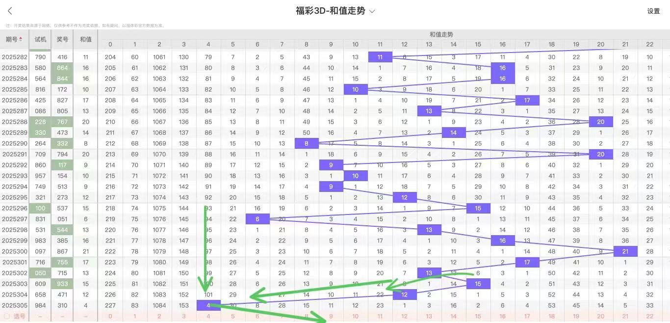 上期开出和值4,和值在第1分区,而近百期开出和值4共1次,下期走势:- - - - -根据和值4的下期钟摆走势来看升趋势稳定,近期和值喜在第2分区活动,和值形态规律:偶: 小和尾形态偶:小,那么本期重点推荐值范围是:9-19主偶形态
