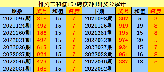 排列三近8次和值15+跨度7同出时奖号为:816、492、186、492、618、924、429、168,下期分别出现:302、919、195、974、924、961、387。