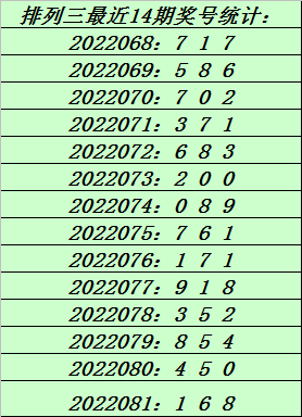上期回顾:排列三第2022081期奖号:168。和值15,跨度7。