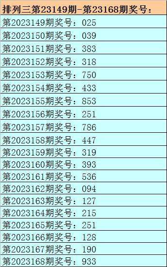 开奖回顾:排列三第2023168期开出奖号:933。其中奖号大小比为1:2,奇偶比为3:0,012路比为3:0:0,和值为15,跨度为6。