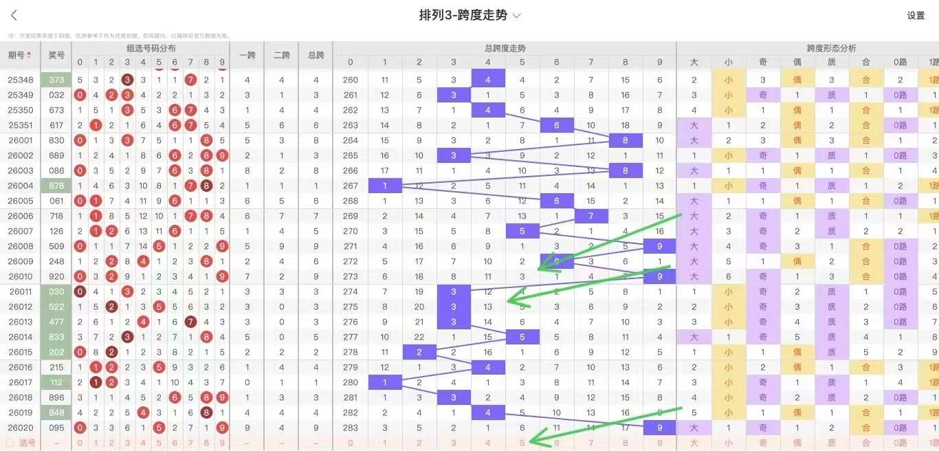 根据走势对跨度观察统计得到以下分析结果:
