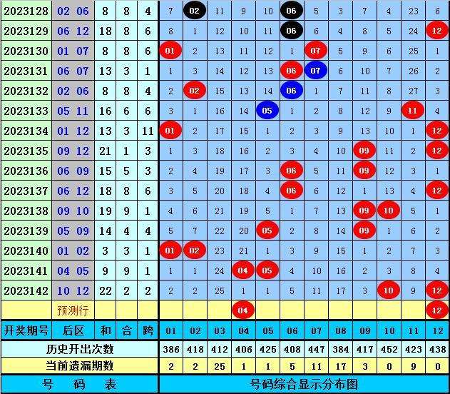范闲大乐透第2023143期前区012路分析:上期前区012路比为1:2:2,各路号码走势基本相当;最近7期前区012路比为10:20:5,1路奖号热出。