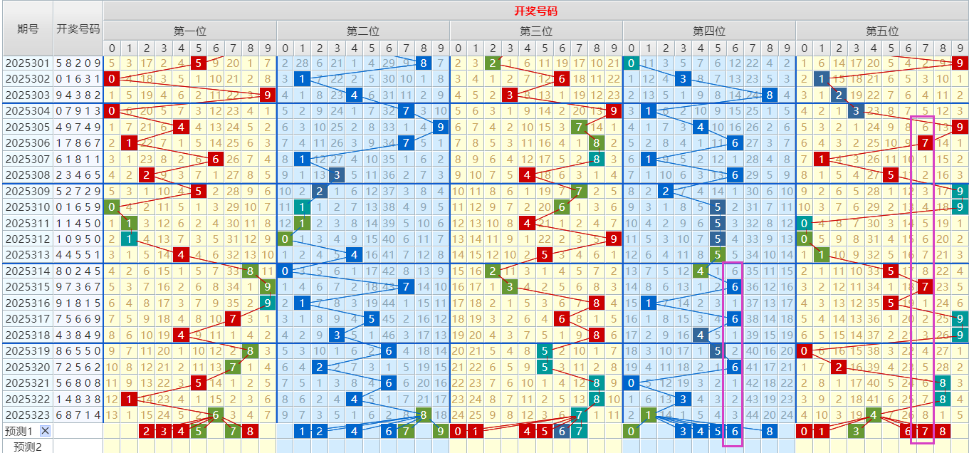 【排列3个位】:个位上期开出号码7,为大奇数,近期开奖号:4-9-5-2-3-8-6-8-5-5-8-8-7,近期偶数在本位置表现不错,大数出球高于小数,本期根据走势图及各形态特征分析,推荐号码:014567