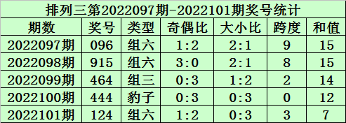 百位号码奇偶比为0:1,偶数号码热出,本期预计偶数号码再出;大小比为0:1,大号走势较冷,本期预计开出大号。