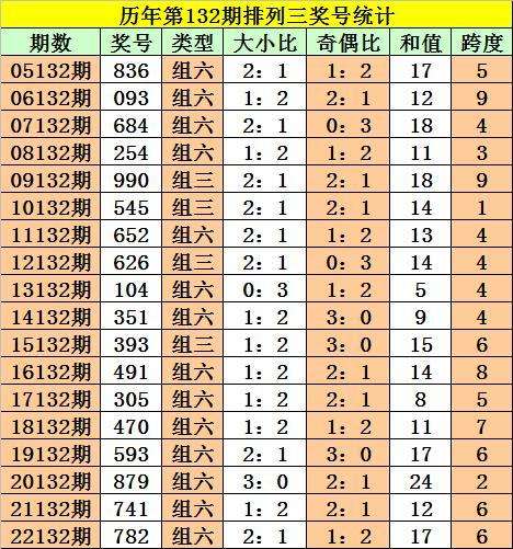 历年第132期奖号中:组三开出4次,组六开出14次。组六明显活跃,本期关注组六。