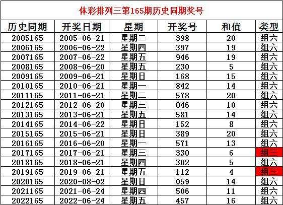 2023年6月24日排列三第165期开奖,历史同期分别开出奖号: