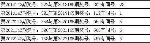 与前期历史同期奖号对比分析,在最近五年开奖中,第143期同期奖号与第165期同期奖号都出现了相同号码: