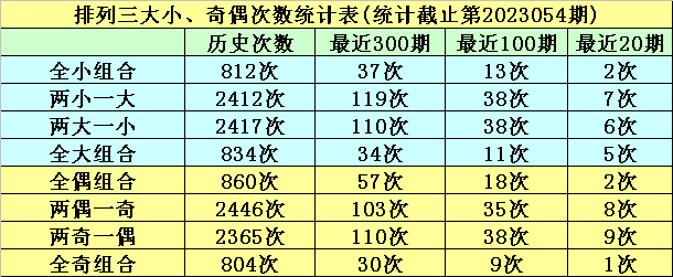 连续10期奖号中,全大形态开出3期,全小形态开出0期,两小一大形态开出5期,两大一小形态开出2期,本期大小形态判断:两大一小奖号。
