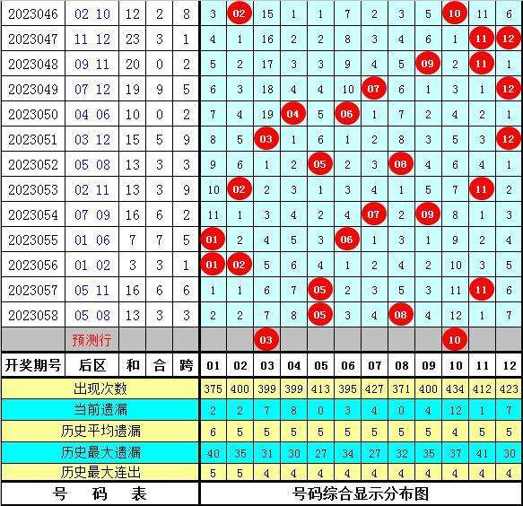 后区分析:后区奇偶比为1:1,本期参考奇偶比1:1;上期大小比为1:1,本期关注大小比1:1。