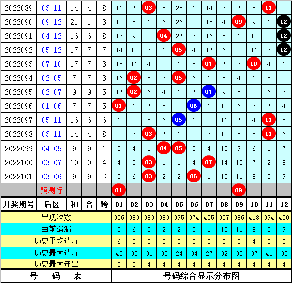 后区分析:上期开出一奇一偶,本期看好奇号走热,关注全奇,参考两码:01 09。
