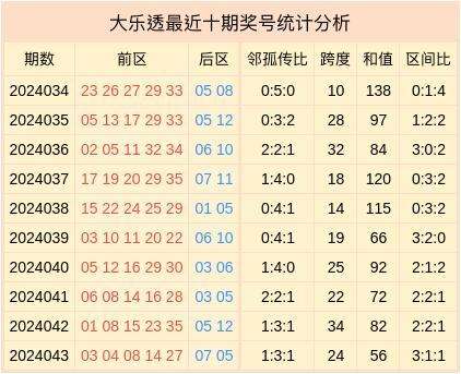 大乐透第2024043期回顾:03、04、08、14、27 + 07、05;