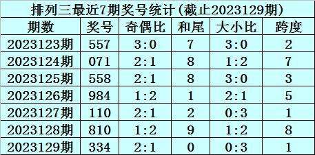 上期回顾:排列三第2023129期奖号开出334,奖号奇偶比为2:1,大小比为0:3。