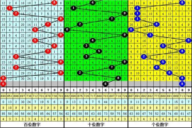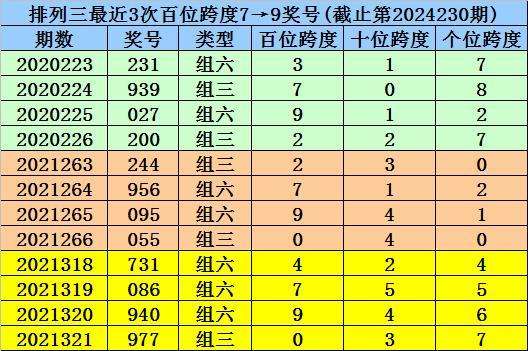 首位跨度分析:首位号码最近3期奖号为2-9-0,连续两期跨度为7、9,历史上首位号码连续两期分别开出跨度7、9的现象共出现12次,其前两次开出奖号分别为: