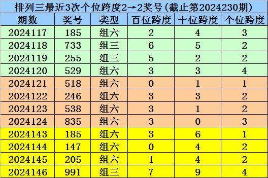 第2024121-第2024123期奖号:518、246、538,其下期奖号为:835,末位号码跨度为3;