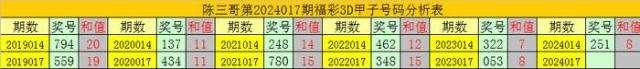 则,第2024017期奖号可以参考第2024014期奖号:251。