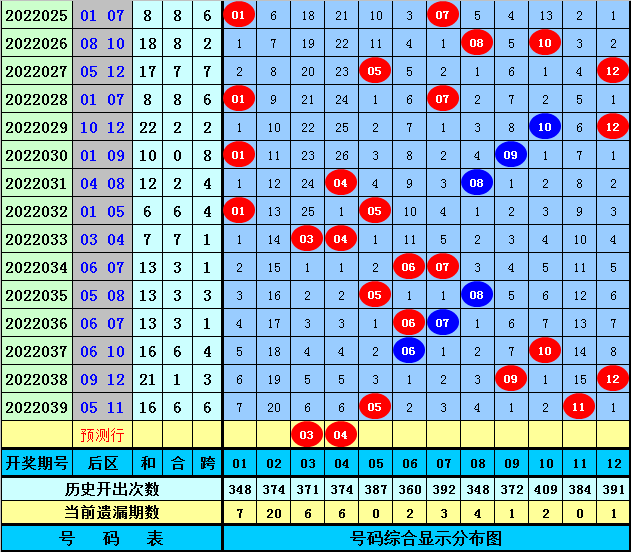 前区第四位:上期开出奖号22,为奇数,对比前期上升10个点位,近10期前区第四位在22-28之间出现了4次,表现相对较冷,本期预计前区第四位号码在该区段回补,关注奖号22。